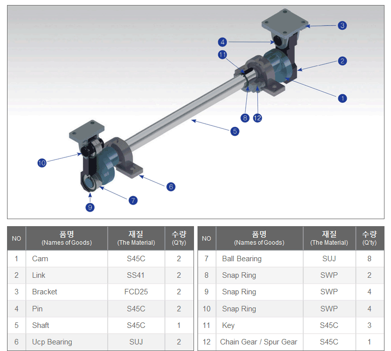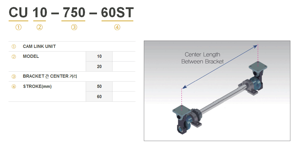 The cam link unit connects cam to a link and attaches a bracket on it to make the bracket go up and down.
