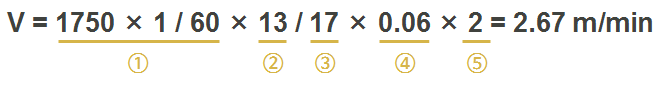 - 예) CU-10-60ST Model을 사용하여 속도는 2.7m/min으로 하고 Geared Motor는 감속비 1/60로 하고 Sprocket을 사용한다.